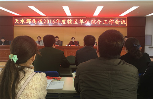 在3月25日召開(kāi)的天水郡街道2016年度轄區單位工作會(huì )議上,我公司獲得2015年度共駐共建先進(jìn)單位稱(chēng)號。會(huì )議上對216年綜合治理工作進(jìn)行了安排,并現場(chǎng)簽訂了責任書(shū)。
