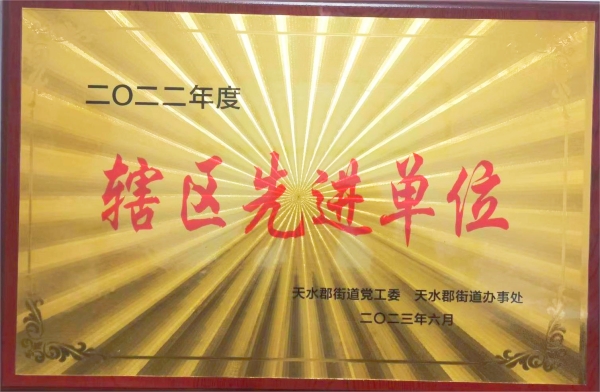 6月29日,在天水郡黨工委、天水郡街道辦事處召開(kāi)的2022年度表彰會(huì )上,我公司被評為2022年度“轄區先進(jìn)單位”。