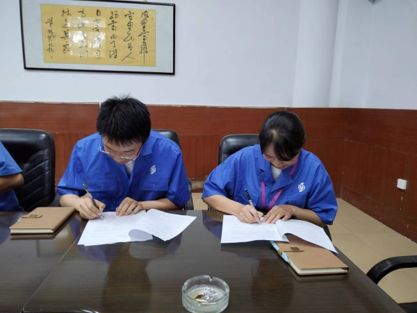 師傅代表王海玲在表態(tài)發(fā)言中說(shuō)到:感謝公司給予的肯定和信任,在今后的工作中嚴格履行師傅職責,將工作經(jīng)驗、崗位技能毫無(wú)保留地傳授給徒弟,做好徒弟工作上的啟蒙老師。徒弟代表羅國華在承諾表態(tài)中說(shuō)到:感謝公司搭建的學(xué)習平臺,珍惜學(xué)習機會(huì ),虛心向師傅學(xué)習請教,聽(tīng)從師傅安排,爭取早日成長(cháng)為能獨當一面的技術(shù)骨干。