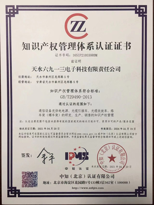 知識產(chǎn)權管理體系認證證書(shū)